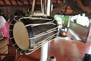 The Chanda is a cylindrical percussion instrument used widely in the state of Kerala, Tulu Nadu of Karnataka and Tamil Nadu in India. In Tulu Nadu, it is known as chande. This instrument is famous for its loud and rigid sound. A Chenda has two sides, the left side called "Edamthala" and the right side "Valamthala".