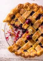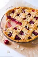 Cherry pie is a pie baked with a cherry filling. Traditionally, cherry pie is made with tart rather than sweet cherries. Morello cherries are one of the most common kinds of cherry used, but other varieties such as the black cherry may also be used.