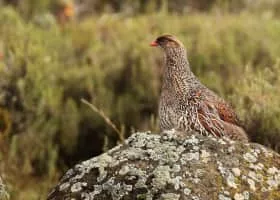 The chestnut-naped francolin is a species of bird in the Phasianidae family. At 33–37 cm and 550–1,200 g, it is a large species of francolin. It is found in Ethiopia and northern Somalia. There haven't been any fluctuations in the population but there isn't enough data to have a population count according to the IUCN.