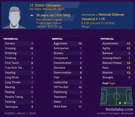 Chhin Chhoeun is a former Cambodian footballer who last played for Tiffy Army in the Cambodian Premier League and the Cambodia national football team. Mainly a right winger, he can also play as a striker or a right-back.