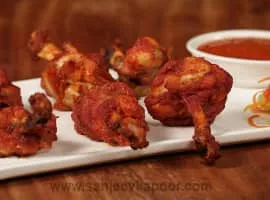 Chicken lollipop is an hors d'oeuvre popular in Indian Chinese cuisine. Chicken lollipop is, essentially a frenched chicken winglet, wherein the meat is cut loose from the bone end and pushed down creating a lollipop appearance. It is usually served hot with Szechuan sauce.
