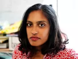 Chitra Ganesh is a visual artist based in Brooklyn, New York. Ganesh's work across media includes: charcoal drawings, digital collages, films, web projects, photographs, and wall murals.