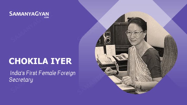 Chokila Iyer is an Indian diplomat and civil servant who served as India's first female foreign secretary from March 2001 to June 2002. She is an Indian Foreign Service officer of the 1964 batch and served as the Ambassador of India to the Republic of Ireland.