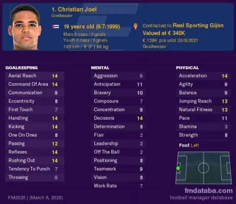 Christian Joel Sánchez Leal, known as Christian Joel, is a Cuban footballer who plays as a goalkeeper for Spanish club Celta de Vigo B, on loan from Sporting de Gijón.