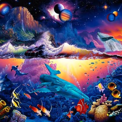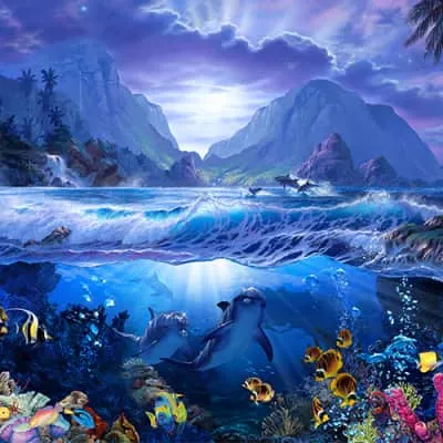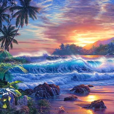Christian Riese Lassen is Hawaii's premier marine artist. Using acrylics, enamels and oils, Lassen's paintings depict a vibrant, idealized vision of the natural world. In his childhood, Lassen's family moved to the Hawaiian island of Maui where he was first captivated by the ocean.