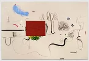Christian Rosa is known for his sparse, abstract paintings built up from individual shapes and marks amid large expanses of raw, untreated canvas. Born in Rio de Janeiro, Brazil, Rosa has lived and worked in Vienna and Los Angeles.