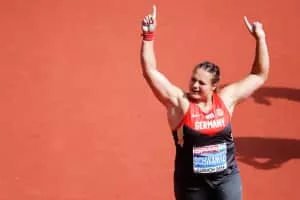 Christina Schwanitz is a retired German shot putter. Her personal best is 20.77 metres, achieved on 20 May 2015 at World Challenge meeting in Beijing. She has 20.05 m on the indoor track, achieved on 2 February 2014 in Rochlitz.