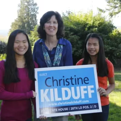 Christine J. Kilduff is an American lawyer and politician. A Democrat, she served in the Washington House of Representatives January 12, 2015 to January 11, 2021. She was elected in 2014, narrowly defeating Paul Wagemann of the Republican Party in the general election.