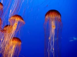 Chrysaora hysoscella, the compass jellyfish, is a common species of jellyfish that inhabits coastal waters in temperate regions of the northeastern Atlantic Ocean, including the North Sea and Mediterranean Sea.