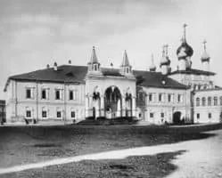 The Chudov Monastery was founded in the Moscow Kremlin in 1358 by Metropolitan Alexius of Moscow. The monastery was dedicated to the miracle of the Archangel Michael at Chonae. The Monastery was closed in 1918, and dismantled in 1929. The construction of the monastery together with its katholikon was finished in 1365.