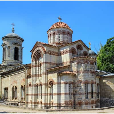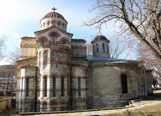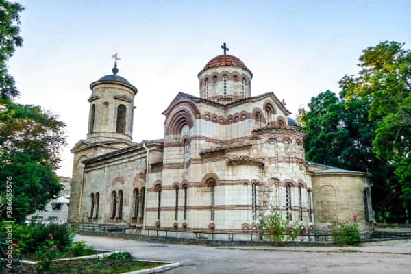 The Church of St John the Baptist is a Christian church located in the city center of Kerch, Crimea. Built in the Byzantine architectural style, it is noted for the candy-striping in its façade. Dating to 717 AD, it is said to be one of the oldest churches in Eastern Europe.