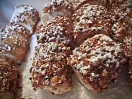 Ciarduna is a type of Italian pastry. Ciarduna siciliana is a traditional sweet pastry from the province of Palermo, Sicily. It consists of an almond cookie shell filled with a ricotta or mascarpone filling. Some variants are also covered with a shell of chocolate or chocolate frosting and powdered sugar.