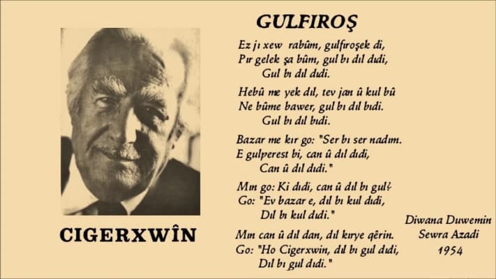 Cigerxwîn or Cegerxwîn was a Kurdish writer and poet. He is known to be one of the most influential Kurdish writers and poets in the Kurdistan region of the Middle East, and his work has been renewed for the creation of hundreds of songs and played a crucial role in the preservation of Kurdish cultural heritage.