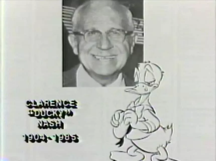 Clarence Charles "Ducky" Nash was an American voice actor and impressionist. He is best remembered as the original voice of the Disney cartoon character Donald Duck. He was born in the rural community of Watonga, Oklahoma, and a street in that town is named in his honor.