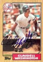 Claudell Washington was an American baseball outfielder who played seventeen seasons in Major League Baseball. He played for the Oakland Athletics, Texas Rangers, Chicago White Sox, New York Mets, Atlanta Braves, New York Yankees, and California Angels from 1974 until 1990. He batted and threw left-handed.