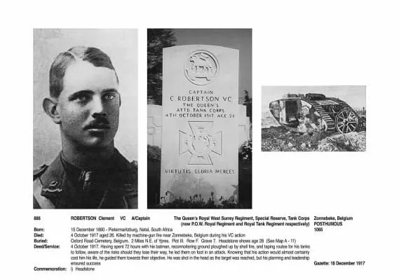 Clement Robertson VC was a Colony of Natal-born, recipient of the Victoria Cross, the highest and most prestigious award for gallantry in the face of the enemy that can be awarded to British and Commonwealth forces. His posthumous Victoria Cross was the first to be awarded to the Tank Corps.
