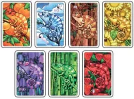 Coloretto is a card game designed by Michael Schacht, originally published in 2003. The game cards depict chameleons, showing that "a player may change his color many times during the game". Rules are provided in both English and French.