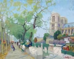 Constantin Kluge was an award winning painter originally from Russia. Raised mostly in Manchuria and Beijing, Kluge eventually settled in Paris and became a French citizen. He is known for his French landscapes and romantic scenes of Paris.