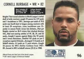 Cornell Rodney Burbage is a former American football wide receiver in the National Football League for the Dallas Cowboys. He also was a member of the New York/New Jersey Knights of the World League of American Football. He played college football at the University of Kentucky.
