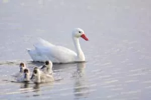 The coscoroba swan is a species of waterfowl endemic to southern South America. It is the smallest of the birds called “swans”, but still a large species of waterfowl. It belongs to the subfamily Anserinae in the family of ducks, swans, and geese, Anatidae. It is placed in the monotypic genus Coscoroba.