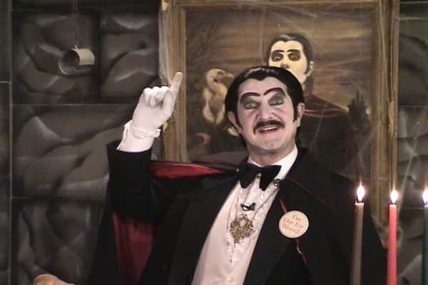 Count Gore de Vol is a television horror host who originally appeared on Washington, D.C.'s WDCA from 1973 to 1987. Originally named M.T. Graves and played by announcer Dick Dyszel, the character first appeared on the WDCA version of the Bozo the Clown program.
