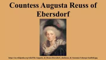 Augusta of Reuss-Ebersdorf, was by marriage the Duchess of Saxe-Coburg-Saalfeld. She was the maternal grandmother of Queen Victoria and the paternal grandmother of Albert, Prince Consort.
