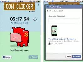 Cow Clicker is an incremental social network game on Facebook developed by video game researcher Ian Bogost. The game serves as a deconstructive satire of social games. The goal of the game is to earn "clicks" by clicking on a sprite of a cow every six hours.