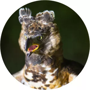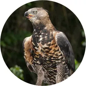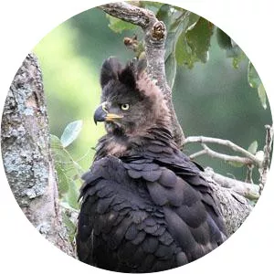 The crowned eagle, also known as the African crowned eagle or the crowned hawk-eagle is a large bird of prey found in sub-Saharan Africa; in Southern Africa it is restricted to eastern areas. Its preferred habitats are principally riparian woodlands and various forests.