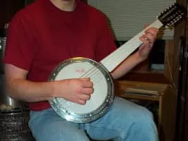 The cümbüş is a Turkish stringed instrument of relatively modern origin. It was developed in 1930 by Zeynel Abidin Cümbüş as an oud-like instrument that could be heard as part of a larger ensemble. The cümbüş is shaped like an American banjo, with a spun-aluminum resonator bowl and skin soundboard.
