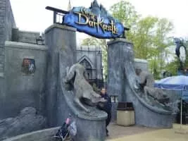 Curse of DarKastle was a dark ride located at Busch Gardens Williamsburg in Williamsburg, Virginia. It was a hybrid dark ride which combined roving motion-simulating vehicles, 3D projection animation, physical sets, in-vehicle audio, and special effects.