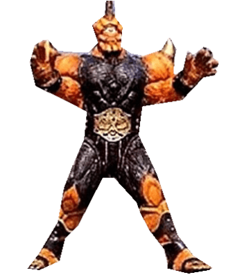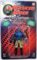 Cyclopter is a blue robotic biker in a leather jacket, slack, and one red eye on his face. Cyclopter has faced Masked Rider in battle occasionally. He is armed with a laser gun and a powerful motorcycle named Cannon Wheels.