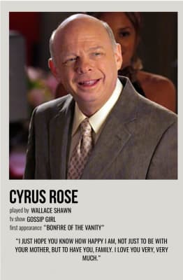 Cyrus Rose is a lawyer and the second husband of Eleanor Waldorf. He is the father of Aaron Rose and stepfather of Blair Waldorf. He is portrayed by Wallace Shawn.