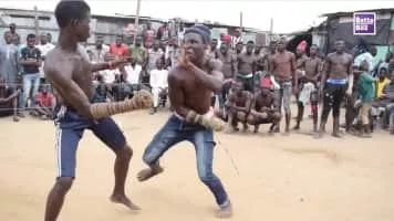 Dambe is a martial art of the Hausa people from Nigeria. Competitors in a typical match aim to subdue each other into total submission mostly within three rounds. It often results in serious bodily injury. Boxers are called by the Hausa word "daæmaænga".