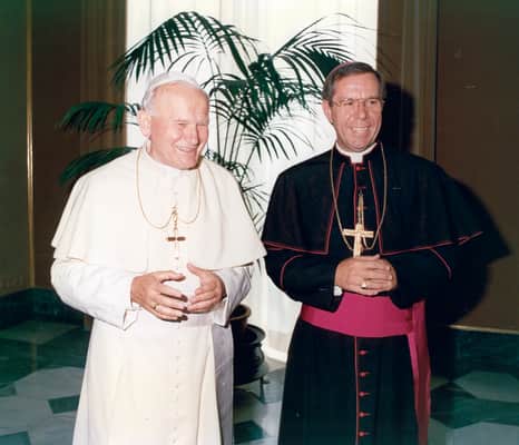 Daniel Mark Buechlein, OSB was a Benedictine monk and an American prelate of the Roman Catholic Church. He served as the third bishop of the Diocese of Memphis in Tennessee from 1987 until he was appointed the fifth archbishop of the Archdiocese of Indianapolis in Indiana from July 14, 1992.
