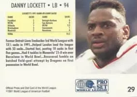 Dannie Key "Danny" Lockett is a former American football linebacker who played two seasons with the Detroit Lions of the National Football League. He was drafted by the Detroit Lions in the sixth round of the 1987 NFL Draft.