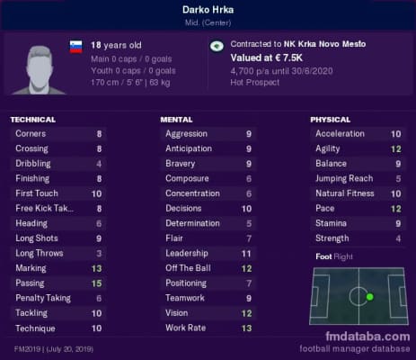 Darko Hrka (SVN) is a a holding midfielder and currently plays for Gorica. Darko Hrka is 23 years old (1999/11/20) and he is 187cm tall. His preferred foot is Right. His jersey number is 43. Darko Hrka has also been used as a ball winning midfielder and as a box to box midfielder.