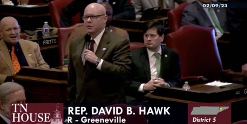 David B. Hawk is a Tennessee politician. He was elected to the 103rd through the 113th General Assembly as the member of the Tennessee House of Representatives representing the 5th district, which is composed of Unicoi County and part of Greene County.