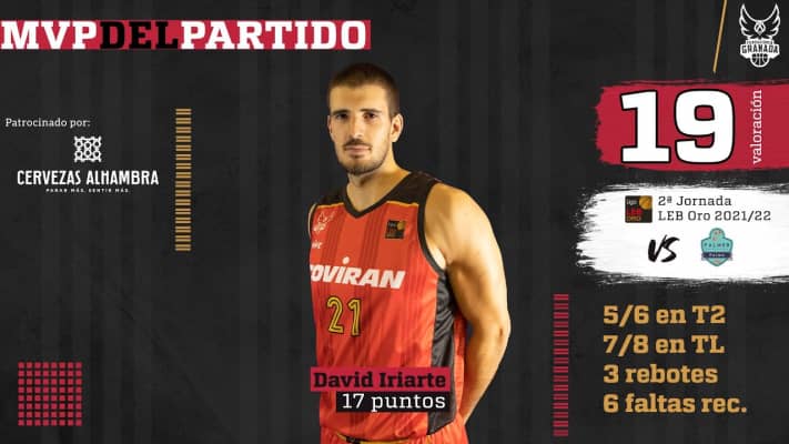 David Iriarte Urdiain is a basketball player born on April 01, 1995 in Palma De Mallorca. His height is six foot nine (2m05 / 6-9). He is a power forward who most recently played for Coviran Granada in Spain - Liga Endesa.