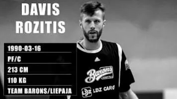 Davis Rozitis is a basketball player born on March 16, 1990 in Cesis. His height is seven foot (2m13 / 7-0). He is a center who most recently played for TAU Castello in Spain - LEB Gold.2m13 / 7-0