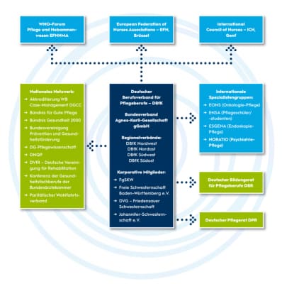 The German Nurses Association was founded in 1903 by Agnes Karll, who was later elected president. It has changed its name several times and is now called “Deutscher Berufsverband für Pflegeberufe”. It has a central office in Berlin and four regional offices.