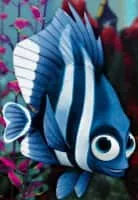 Deb/Flo is a main character in Finding Nemo and a minor character in Finding Dory. She is a blue and white humbug. The dentist received Deb through a mail order. She believes her reflection is her twin sister named Flo. Flo is a loyal companion.