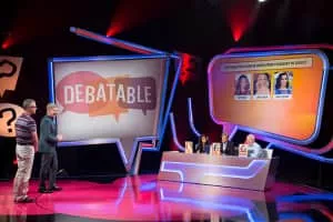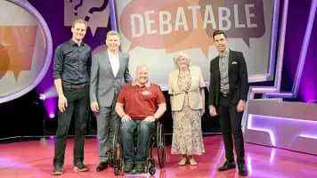 A host of celebrities join presenter Patrick Kielty in `Debatable', a quiz show series that showcases contestants' knowledge and debating skills. Each episode sees one player from the general public attempt to answer a series of questions over three rounds, to be in with the chance of winning a cash prize. Only before they give their final answer they hear from a panel of three well-known TV stars who debate the question at hand with their own facts on the topic. In this way the panel's influence could prove to be helpful or a complete hindrance. How well they debate could change the course of the game for whoever is in the hot seat. … MORE