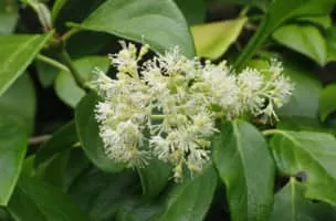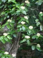 Decumaria barbara, commonly called climbing hydrangea or woodvamp, is a species plant in the Hydrangea family. It is native to southeastern United States, where it is widespread. Its typical natural habitat is wet bottomland forest, although it is also found in rich mesic forests in the Appalachian Mountains.