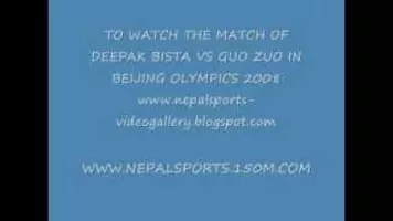 Deepak Bista is a male Nepalese taekwondo practitioner. He won the bronze medal in the welterweight category at the 2006 Asian Games, and competed at the 2008 Summer Olympics. On August 8, 2008 at the opening ceremony of the Beijing Olympics, Bista was the flagbearer for Nepal.