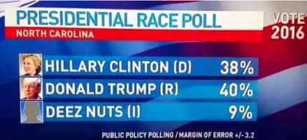 Deez Nuts was a satirical candidate, portrayed by Brady C. Olson, who ran in the 2016 United States presidential election. His form to run for office was filed with the Federal Election Commission in late July 2015.