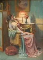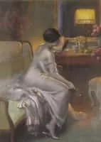 Delphin Enjolras was a French academic painter. Enjolras painted portraits, nudes, interiors, and used mostly watercolours, oil, and pastels. He is best known for his intimate portraits of young women performing mundane activities such as reading or sewing, often illuminated by lamplight.
