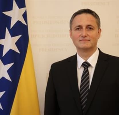 Denis Bećirović is a Bosnian politician, professor and historian who is the 8th and current Bosniak member of the Presidency of Bosnia and Herzegovina. Previously, he was a member of the national House of Peoples from 2019 to 2022. He is also the current vice-president of the Social Democratic Party.