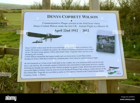 Denys Corbett Wilson was a pioneering Irish aviator. He is most notable for his 100-minute flight on 22 April 1912, from Goodwick in Pembrokeshire to Crane near Enniscorthy in county Wexford – from the island of Great Britain to the island of Ireland. The journey time was 1 hour 40 minutes.