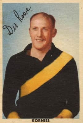 Kenneth Desmond Rowe was an Australian rules footballer who played in the Victorian Football League between 1946 and 1957 for the Richmond Football Club. He was later senior coach of Richmond from 1961 to 1963.
