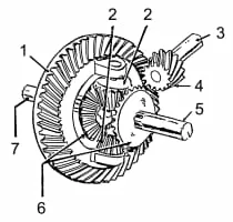 A differential is a gear train with three shafts that has the property that the rotational speed of one shaft is the average of the speeds of the others, or a fixed multiple of that average.